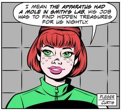 Briar Rose posed as a journalist in an attempt to gather information about Diet Smith's newly-invented Time Drone. She interviewed Dick Tracy, then interviewed Smith at his facility. Her visit to Diet Smith industries corresponded with the explosion caused by Sterling Eliot's mishandling of the Time Drone.