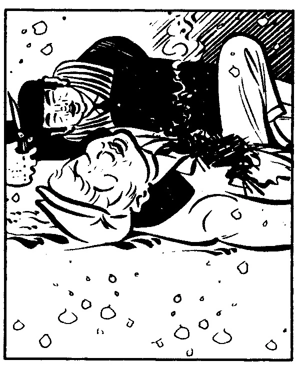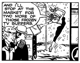 Burly and Jez planned to rob (and possibly assault) Moon Maid as she returned home from selling a joke to Chet Jade. Moon Maid detected their criminal intent and shocked them with her paralyzing ray. Burly and Jez laid in the snow until they were discovered by Patrolman Ryan.