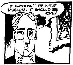 Dab Stract conceived of a scheme to steal valuable artworks from museums. His associate Pierre W. Easel (aka Pete the Weasel) opened an art school, where he purported to teach students by having them copy famous paintings. Another associate named Rocky Sock secured a job as a museum security guard. Sock would then unlock the museum doors after hours, enabling Easel and Leitmo Tiv (an art critic and associate of Stract's) to replace the paintings with forgeries. Tiv would then be in a position to identify the forgeries as genuine if their origin was questioned.