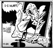A shootout ensued in the art gallery. Magnum was killed by a ricochet and Dab Stract suffered several gunshot wounds. He survived and managed to get to an underworld doctor who treated his injuries. Stract was a fugitive once again, and his features had now been radically changed.