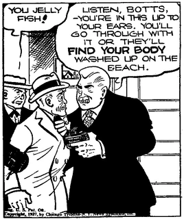When Johnny Mintworth was a fugitive from the law, he was brought to Supeena by some of Supeena's henchmen. Supeena offered Johnny the chance to make some money, and changed Johnny's name to "Bill Botts". Using a complicated device to drop a heavy object on Johnny's arm, Supeena used Johnny as the claimant in a fraudulent insurance claim.