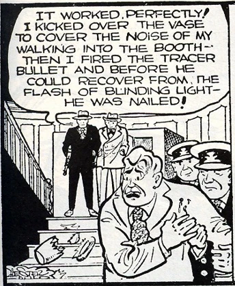 Tracy was able to return to the police supply room and fit a machine with "tracer" bullets. This enabled Tracy to surprise Supeena in the darkened room in which Supeena was hiding. Shots were fired and Supeena was wounded in the arm. He was taken into police custody and brought to a doctor.