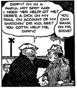Steve the Tramp had kidnapped Junior Tracy and taken him across the country to Hank Steele. During the course of their journey they came across an old associate of Steve's called "Dippy" McDoogun. Steve and Dippy stole a handcar from two railroad workers at gunpoint.