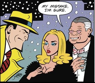 Endless and her associate Minty attended the surprise birthday party of Chief Brandon. They were confronted by Dick Tracy as they left.