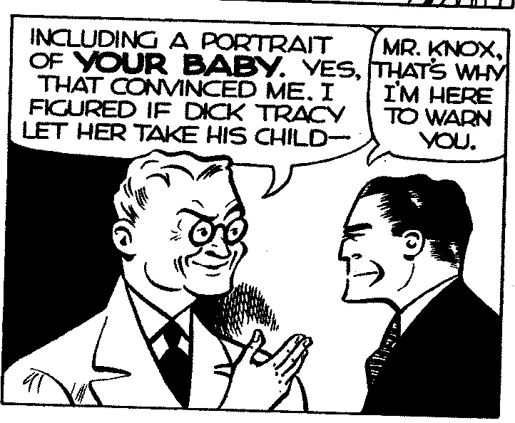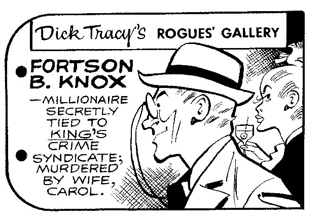 Fortson B. Knox was a wealthy man and prominent citizen in Dick Tracy's city. He had wavy hair and typically wore eyeglasses. Knox was secretly a member of the criminal syndicate operated by The King.