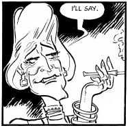 Greedelia was vain and materialistic. She spent her husband's money on jewelry and cosmetic surgery procedures. She had had multiple face lifts which left her mouth in a constant near-grin.