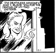 When Tracy returned to his city, the specter appeared again, referring to herself as "Deathless Mahoney" and blaming Tracy for the deaths of Breathless and Heartless. With Diet Smith's help, Tracy discovered the holo-projectors that were causing him to "hallucinate". Tracy went to Heartless' home, battling holographic henchmen and mind games, until he happened upon an old woman whom he quickly deduced was both Heartless and "Deathless". Since she was old and considered legally dead, Tracy gave her a one-way bus ticket to a tropical retirement, believing that she would her live out her final days in peace and seclusion.