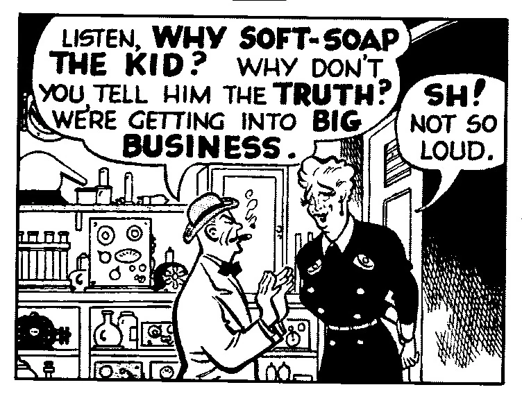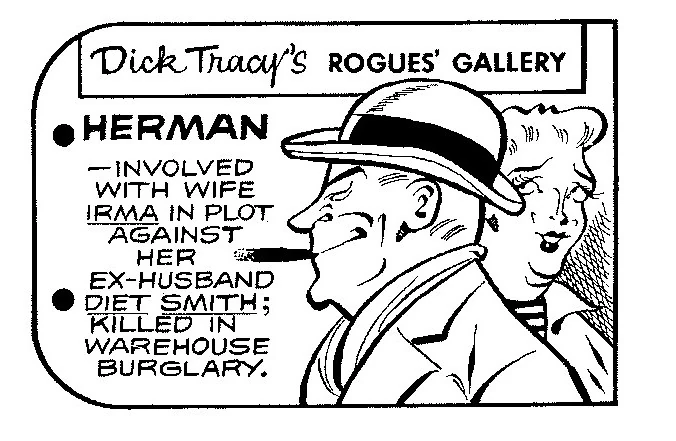 Herman joined in Irma's plot to frame Diet Smith for a murder and take credit for the development of the 2-Way Wrist Radio and the Atom Light. When the plan unraveled, the family prepared to leave the city on their boat, which also contained Brilliant's laboratory.