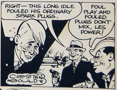 Les Power was an adversary of Dick Tracy who appeared in a print advertisement for AutoLite Auto Parts. He had a slim build, wrinkled cheeks, prominent teeth and marks on his face (either freckles or some kind of skin condition).