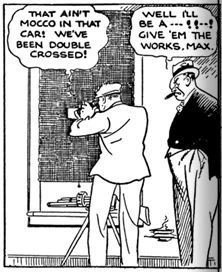 Max was a BAR Machine gunner for Big Boy's gang. He recognized that Dick Tracy was impersonating Ribs Mocco. Big Boy ordered Max to open fire on the car in which Tracy and Tess riding. The couple was not killed due to a large delivery van driving between their car and Max's firing position.