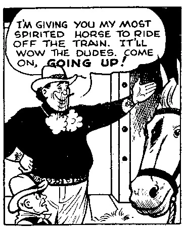 Montana Joe met the criminal Tabby Angus, who lived near the radio station, and invited him inside. Angus' horse Sparkplug disrupted a broadcast, which was heard by Dick Tracy.