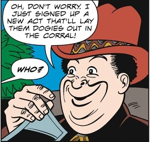 Montana Joe was the owner and proprietor of a Rodeo Circus that toured the mid-west and western United States by railroad train. It featured several animal acts, trick riders, and other typical rodeo attractions. The rodeo circus was based out of Doggie City. At the the time of his first appearance, Montana Joe claimed to have been in the rodeo circus business for thirty years.