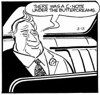 Mousse found and bribed corrupt police officers and other officials in Dick Tracy's city. He paid them with cash hidden in boxes of candy. This enabled him to engage in his other criminal endeavors without police interference. He also convinced some of the officers to commit acts of sabotage around police headquarters, which impeded those members of the department that Mousse could not bribe.