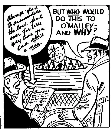 Eyes discovered that O'Malley was a policeman and had Palmy take the officer at gunpoint. B.B. Eyes then killed O'Malley and delivered the tires and O'Malley's body to Dick Tracy along with a taunting note. Before his death O'Malley had managed to hide a document that gave the address of the bootleggers' hideout, which was discovered by Pat Patton