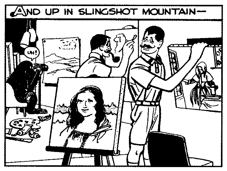 Diet Smith had brought B.O. Plenty and his family to Slingshot Mountain to visit B.O.'s birthplace. While in the Plenty family graveyard, Sparkle Plenty was abducted by Li'l Dropout, who apparently wanted to use her as a model. Smith and B.O. summoned Dick Tracy to help search for Sparkle.