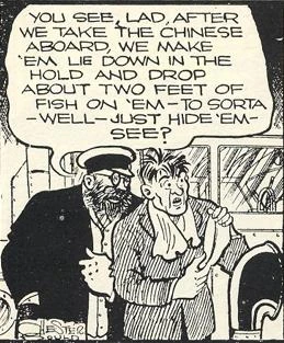 Pigface Sadiss was new to the smuggling operation that Stud Bronzen was running. When the ship was raided by police and Coast Guard, Pigface was killed.
