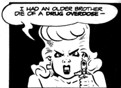 After the capture of Tracy, Restless turned on Hi-Top and Little Boy, holding them at gunpoint. She blamed drugs for the death of her brother, and refused to be involved any further with Little Boy and Hi-Top's operation (it is possible that she had always intended to turn on her associates, but this is unclear).