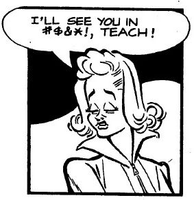 Restless strongly resembled her deceased aunt Breathless, which quickly caught the attention of her new classmate, Harold "Hi-Top" Jones. Hi-Top had approached Restless with a note from his boss Little Boy, saying that the three of them had a common family lineage of crime. She met with Little Boy and he proposed that she be his "moll", with the understanding that it would be just for appearances and that no intimate physical contact would be involved. Restless reluctantly agreed and took to wearing a form-fitting black strapless dress.