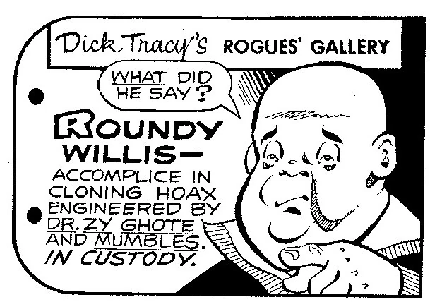 "Roundy" Willis was a heavyset, bald-headed man who worked for Dr. Zy Ghote. He had difficulty understanding Mumbles during the cloning hoax that he and the doctor were perpetrating.