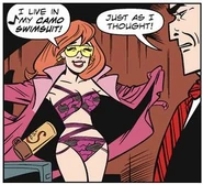 When Doc and Sally's cohort Mitchell accidentally left a container of cocaine with Kandikane Lane, Sally pretended to be a journalist to gain access to Lane at the Patterson Playhouse. She found the container but was confronted by Dick Tracy, who discovered the narcotics on her possession.