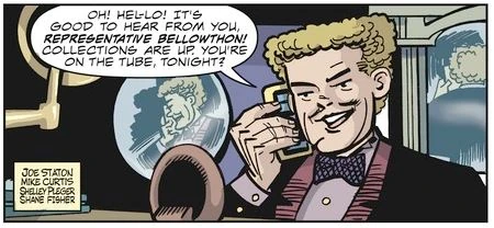 Selfy attempted to secure Vitamin Flintheart's endorsement for Bellowthon and her anti-Lunarian bill. Vitamin's manager Coffee Grounds confronted Selfy, and Selfy poisoned Coffee in retaliation. Coffee survived but was unable to identify Selfy as his assailant.