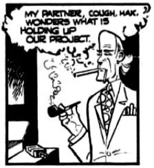 The man known as Smokes was a criminal who operated a seemingly legitimate business as a land developer in Dick Tracy's city. He was a business associate of Pig E. Bank. Smokes was a slender man with a high forehead and light-colored hair.