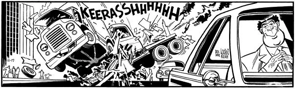 - Sam Catchem later declared that Snails had killed six people at the site of the armored car crash, though the actual total would appear to have been seven (the two guards, the two men in the other truck, the two men in the cab, and the motorcycle driver). The tally is more complicated since Snails was not shown shooting Snatch and Filch in their truck, but it was implied that Snails was somehow responsible for the failure of the truck's brakes and air bags.