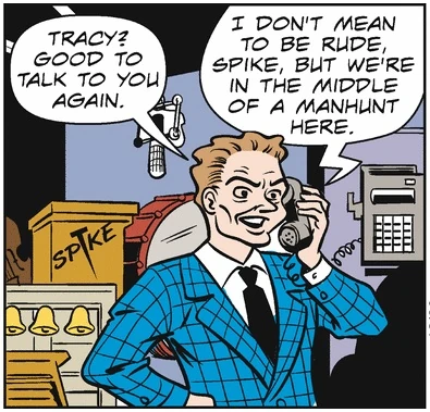 In Dick Tracy Meets His Match, Spike and his orchestra were a part of Ted Tellum's popular television variety show. Spike was briefly a suspect in Tellum's murder, but was cleared of any wrongdoing.