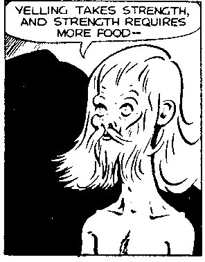 When Dick Tracy was also abducted and left for dead on the desolate island, Whitehall observed the man for some time before allowing himself to be discovered. Whitehall wanted to assess Tracy's strength and resourcefulness. When the men finally met, Whitehall revealed that he had been abducted on March 28th of that year, which meant he had been there for several months. Whitehall shared some of his dried goat meat with Tracy from his carefully rationed supply.