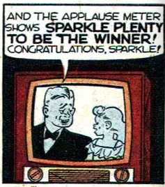 Ted Tellum later appeared as the host of a popular television program that featured talented child acts. B.O. Plenty and Gravel Gertie brought their young daughter Sparkle Plenty to meet Tellum, who was impressed with the child's musical ability.
