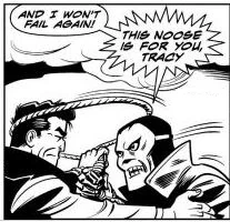 Policewoman Lizz (who had killed Angeltop's brother Flattop Jr.) went to question Angeltop at her hotel room, unaware that Brow Jr. was staying with her. He hid and attempted to knock Lizz unconscious, but she fought back and managed to shoot the young Brau in the Shoulder. Tracy and Sam Catchem were waiting downstairs, but Angeltop and the wounded Brau were able to separate them and kidnapped Tracy at gunpoint.